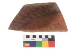| Description / विवरण | Specimen of a potsherd with black decorative geometric painting. |