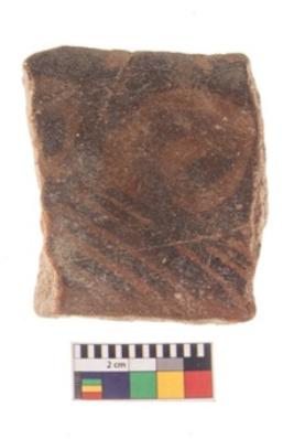 | Description / विवरण | Specimen of a potsherd with black decorative geometric painting. |