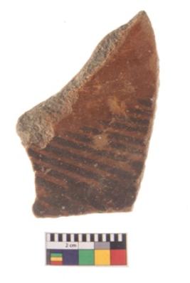 | Description / विवरण | Specimen of a potsherd with black decorative geometric painting. |