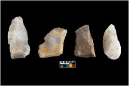 | Description / विवरण | There are n-4 of intact cores. Out of them 3 are made up Chalcedony and 1 is made up of Chert.There are multidirectional irregular dominant scar pattern on both dorsal and ventral face of the cores. |