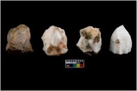 | Description / विवरण | There are n-4 of intact cores. Out of them 3 are made up Chalcedony and 1 is made up of Chert.There are multidirectional irregular dominant scar pattern on both dorsal and ventral face of the cores. |