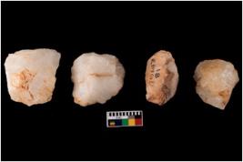 | Description / विवरण | Four worked cores; they show impressions of removal of flakes. |