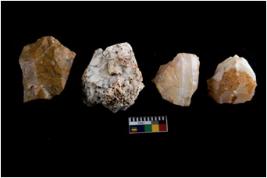 | Description / विवरण | There are n-4 of intact cores. Out of them 3 are made up Chalcedony and 1 is made up of Chert.There are multidirectional irregular dominant scar pattern on both dorsal and ventral face of the cores. |