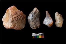 | Description / विवरण | There are n-4 of intact cores. Out of them 3 are made up Chalcedony and 1 is made up of Chert.There are multidirectional irregular dominant scar pattern on both dorsal and ventral face of the cores. |