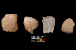 | Description / विवरण | Four worked cores; they show impressions of removal of flakes. |
