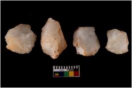 | Description / विवरण | Four worked cores; they show impressions of removal of flakes. |