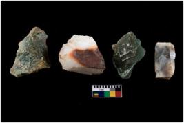 | Description / विवरण | There are n-4 of intact cores. Out of them 3 are made up Chalcedony and 1 is made up of Chert.There are multidirectional irregular dominant scar pattern on both dorsal and ventral face of the cores. |