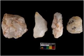 | Description / विवरण | Four worked cores; they show impressions of removal of flakes. |