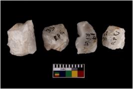 | Description / विवरण | Four worked cores; they show impressions of removal of flakes. |