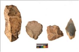 | Description / विवरण | Four flakes; most of them are tapering at one end with few having sharp edges. |