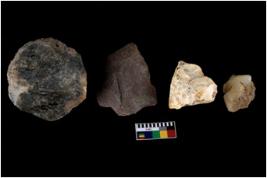 | Description / विवरण | There are n-4 of intact cores. Out of them 2 are made up Chalcedony and 2 are made up of Chert.There are multidirectional irregular dominant scar pattern on both dorsal and ventral face of the cores. |