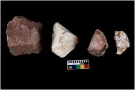 | Description / विवरण | There are n-4 of intact cores made up of Chert.There are multidirectional irregular dominant scar pattern on both dorsal and ventral face of the cores. |