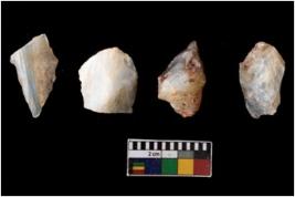| Description / विवरण | There are n-4 of intact cores made up of Chalcedony.There are multidirectional irregular dominant scar pattern on both dorsal and ventral face of the cores. |