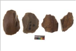 | Description / विवरण | Four worked flakes with sharp edges and few are tapering at one end. |