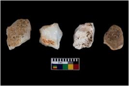 | Description / विवरण | There are n-4 of intact cores. Out of them 3 are made up Chalcedony and 1 is made up of Chert.There are multidirectional irregular dominant scar pattern on both dorsal and ventral face of the cores. |