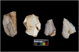 | Description / विवरण | There are n-4 of intact cores made up Chalcedony.There are multidirectional irregular dominant scar pattern on both dorsal and ventral face of the cores. |