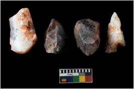 | Description / विवरण | There are n-4 of intact cores. Out of them 1 is made up Chalcedony, 1 is made up of Agate and 2 are made up of Chert.There are multidirectional irregular dominant scar pattern on both dorsal and ventral face of the cores. |
