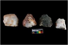 | Description / विवरण | There are n-4 of intact cores. Out of them 2 are made up Chalcedony and 2 are made up of Chert.There are multidirectional irregular dominant scar pattern on both dorsal and ventral face of the cores. |
