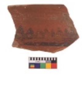 | Description / विवरण | Specimen of black on red ware with decorative geometric painting. |