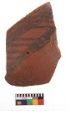 | Description / विवरण | Specimen of black on red ware with decorative geometric Linear Pattern painting. |