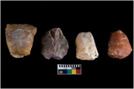 | Description / विवरण | There are n-4 of intact cores made up of Chert.There are multidirectional irregular dominant scar pattern on both dorsal and ventral face of the cores. |