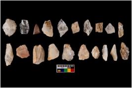| Description / विवरण | Specimen of flake tool with prominent flaking marks. It made up of a short flakes with sides trimmed. |