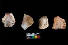 | Description / विवरण | There are n-4 of intact cores made up of Chert.There are multidirectional irregular dominant scar pattern on both dorsal and ventral face of the cores. |