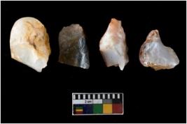 | Description / विवरण | There are n-4 of intact cores made up of Chalcedony.There are multidirectional irregular dominant scar pattern on both dorsal and ventral face of the cores. |