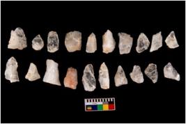 | Description / विवरण | Specimen of flake tool with prominent flaking marks. It made up of a short flakes with sides trimmed. |