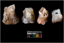 | Description / विवरण | There are n-4 of intact cores made up of Chalcedony.There are multidirectional irregular dominant scar pattern on both dorsal and ventral face of the cores. |