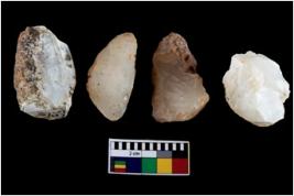 | Description / विवरण | There are n-4 of intact cores made up Chalcedony.There are multidirectional irregular dominant scar pattern on both dorsal and ventral face of the cores. |