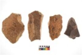 | Description / विवरण | Specimen of a cores with several broad fluted marks. Two of them are tapering at one end. |