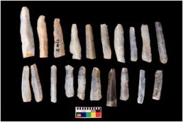 | Description / विवरण | Specimen of flake tool with prominent flaking marks. It made up of a short flakes with sides trimmed. |