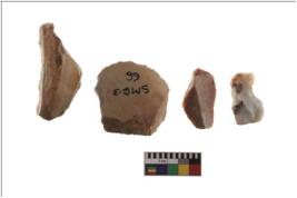 | Description / विवरण | Four worked flakes with sharp edges and few are tapering at one end. |