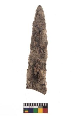 | Description / विवरण | A partially broken specimen of a knife blade with straight sided body along with a pointed tip. |