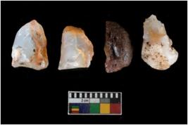| Description / विवरण | There are n-4 of intact cores made up of Chalcedony.There are multidirectional irregular dominant scar pattern on both dorsal and ventral face of the cores. |