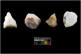 | Description / विवरण | There are n-4 of intact cores. Out of them 2 are made up Chalcedony, 1 is made up of Agate and 1 is made up of Chert.There are multidirectional irregular dominant scar pattern on both dorsal and ventral face of the cores. |