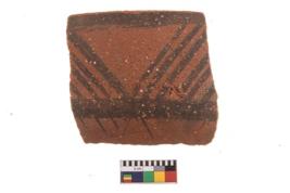 | Description / विवरण | Specimen of black on red ware with decorative geometric Its sides sloping inwards and with a featureless rim painting. |