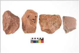 | Description / विवरण | Four flakes; most of them are tapering at one end with few having sharp edges. |