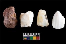 | Description / विवरण | There are n-4 of intact cores. Out of them 2 are made up Chalcedony, 1 is made up of Agate and 1 is made up of Chert.There are multidirectional irregular dominant scar pattern on both dorsal and ventral face of the cores. |