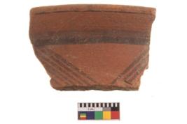 | Description / विवरण | Specimen of black on red ware with decorative geometric Vertical parallel lines painting. |