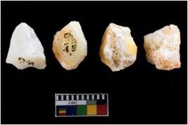 | Description / विवरण | There are n-4 of intact cores made up of Chalcedony.There are multidirectional irregular dominant scar pattern on both dorsal and ventral face of the cores. |