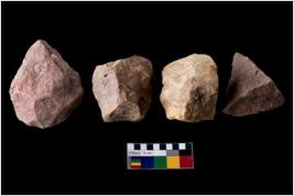 | Description / विवरण | There are n-4 of intact cores made up of Chert.There are multidirectional irregular dominant scar pattern on both dorsal and ventral face of the cores. |