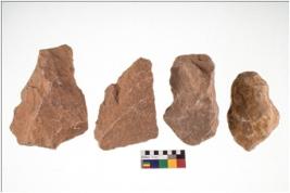 | Description / विवरण | Four flakes; most of them are tapering at one end with few having sharp edges. |
