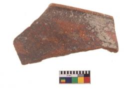 | Description / विवरण | Specimen of black on red ware with decorative geometric Latticed diamonds set painting. |