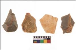 | Description / विवरण | Four flakes; most of them are tapering at one end with few having sharp edges. |