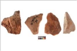 | Description / विवरण | Four worked flakes with sharp edges and few are tapering at one end. |