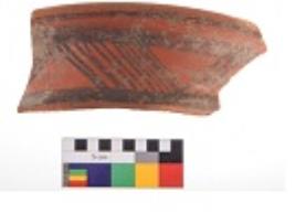 | Description / विवरण | Specimen of black on red ware with decorative geometric Linear Pattern painting. |