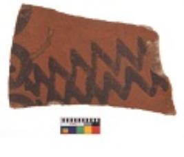 | Description / विवरण | Specimen of black on red ware with decorative zigzag pattern design. |