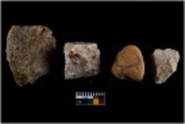 | Description / विवरण | Specimen of cores with visible weathered cortex and few broad fluted marks. Almost all are irregular in shape and size. |